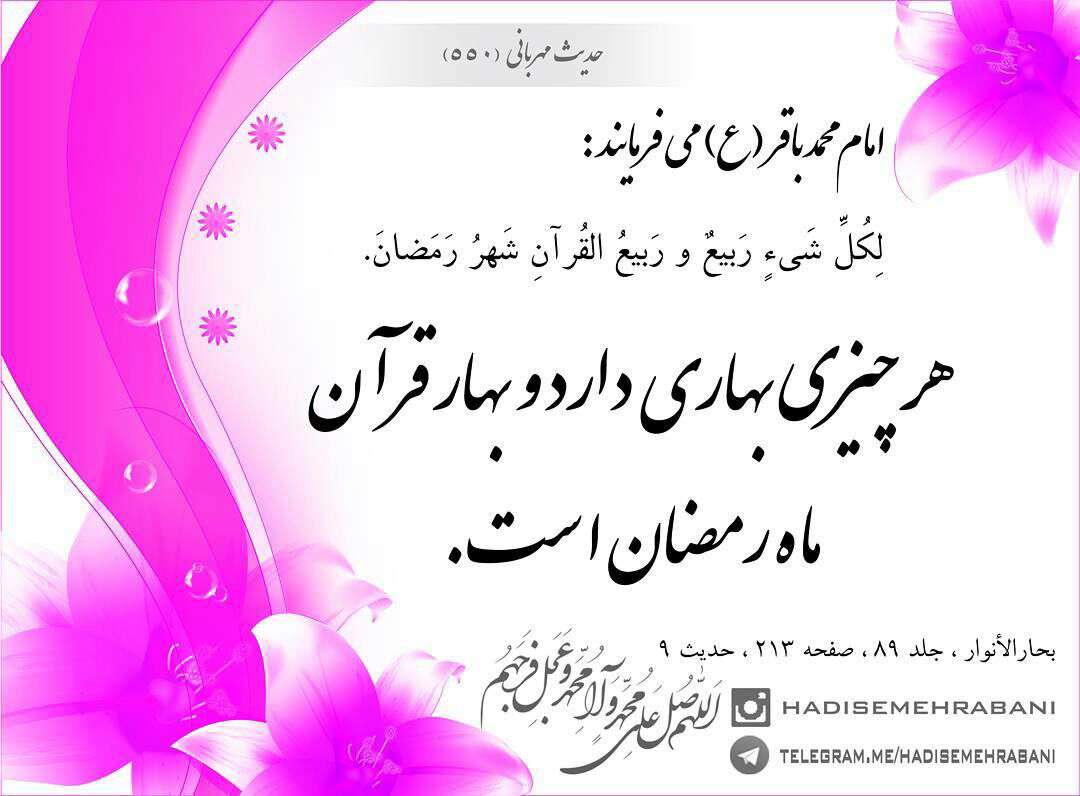 الْحَمْدُ لِلَّهِ الَّذِی جَعَلَ مِنْ تِلْکَ السُّبُلِ شَهْرَهُ شَهْرَ رَمَضَانَ، شَهْرَ الصِّیَامِ، وَ شَهْرَ الْإِسْلَامِ، وَ شَهْرَ الطَّهُورِ، وَ شَهْرَ التَّمْحِیصِ، وَ شَهْرَ الْقِیَامِ «الَّذِی أُنْزِلَ فِیهِ الْقُرْآنُ، هُدی لِلنَّاسِ، وَ بَیِّناتٍ مِنَ الْهُدی وَ الْفُرْقانِ»و سپاس خدای را که از جمله آن راه ها، ماه خود ماه رمضان را قرار داد، ماه روزه، ماه اسلام، ماه طهارت، ماه آزمایش، ماه قیام، ماهی که قرآن را در آن نازل کرد، برای هدایت مردم، و بودن نشانه هایی روشن از هدایت و مشخص شدن حق از باطل